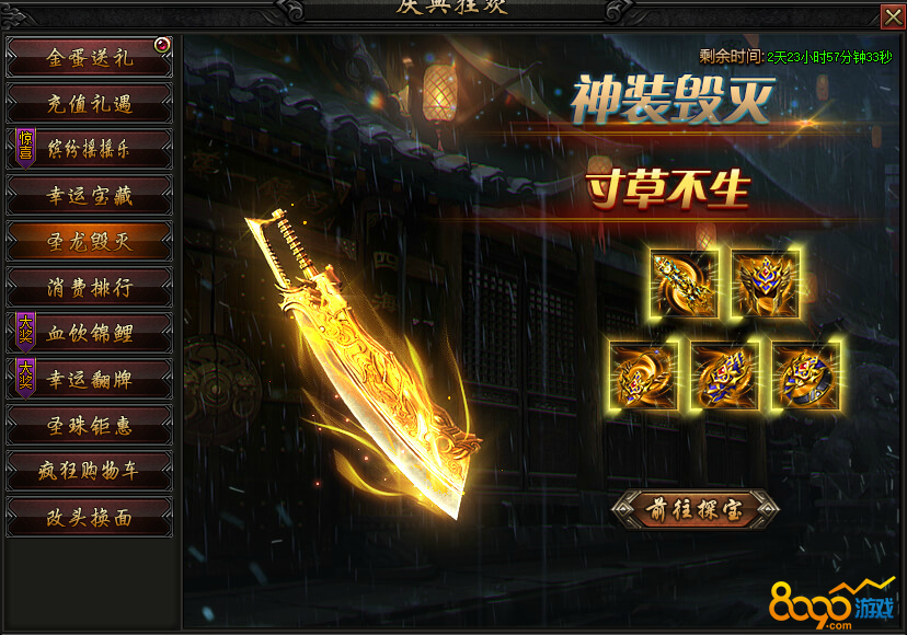 活动内容:活动期间,寻宝获取圣龙毁灭装备