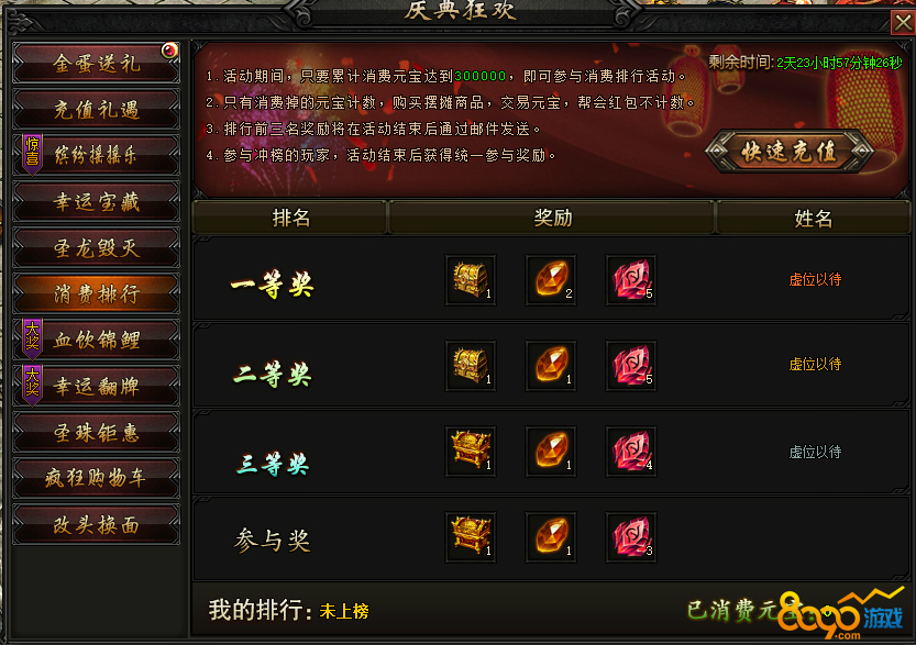 活动内容:消费元宝,争榜获得稀有奖励,豪礼等您获取!