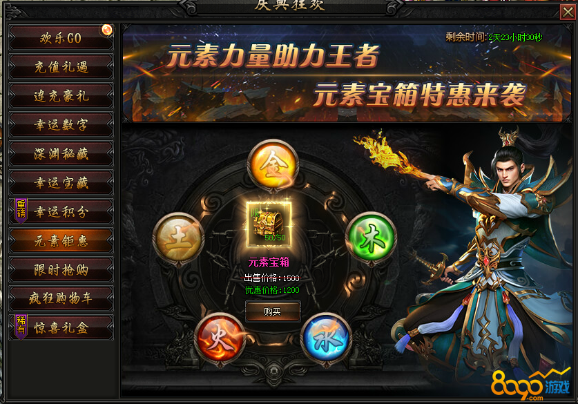 活动内容:活动期间内,大量元素宝箱,打折出售,助力元素提升,快人一步。