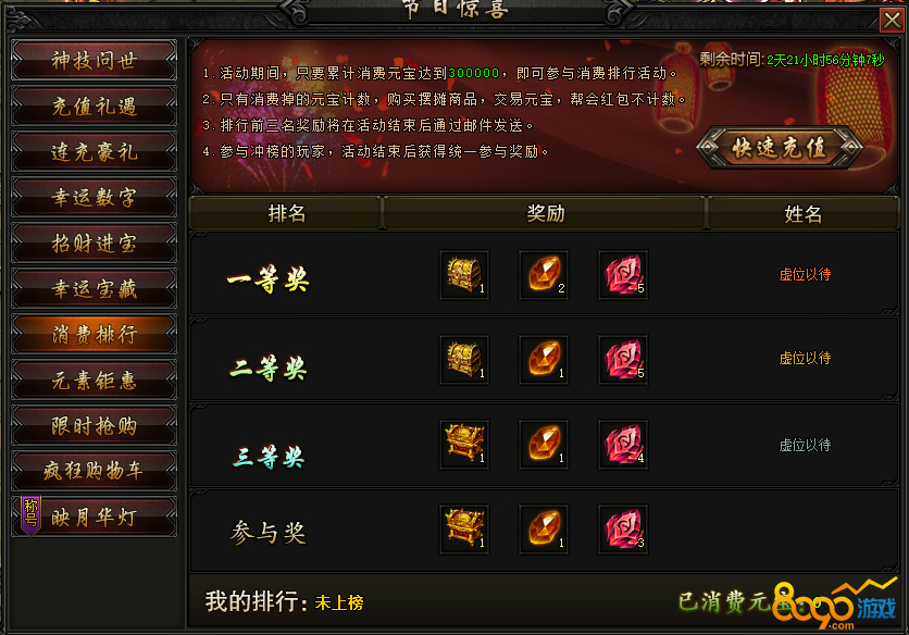活动内容:消费元宝,争榜获得稀有奖励,豪礼等您获取!
