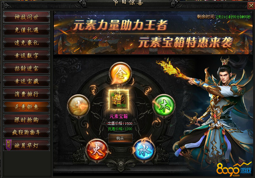 活动内容:活动期间内,大量元素宝箱,打折出售,助力元素提升,快人一步。