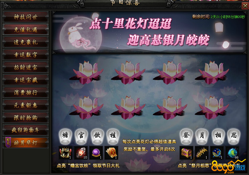 活动内容:活动期间,点亮花灯领取豪礼。