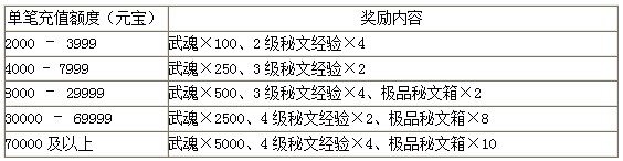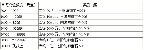 d.必须是一次性充值的元宝达到指定的额度才能获得奖励,累积充值总额达到指定金额也不能获得奖励。
