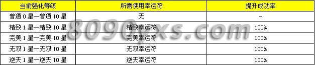 最终强化成功率=基本成功率+福缘成功率加成+道具成功率加成