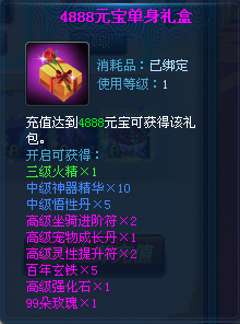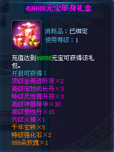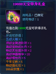 【活动内容】:活动期间充值即送,累计充值达到获取礼包需求的金额,可获得相应礼包。