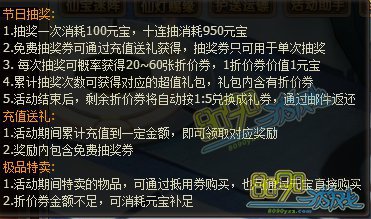 2.活动期间内,奖池内的极品大奖只能抽取一次。
