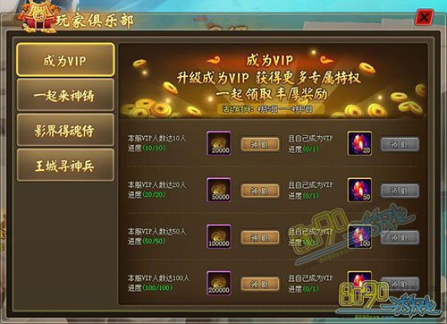 活动内容:升级成为VIP,获得更多专属特权,一起领取丰厚奖励。