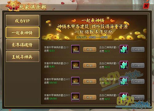 活动内容:神铸木甲各建筑,额外获得海量资源,一起领取丰厚奖励。