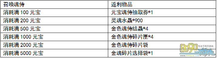 3.活动期间,玩家通过在召唤魂侍消费,可参与循环返利活动(满5000元宝重新循环)
