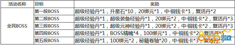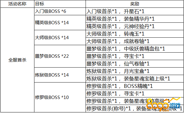 活动四:首次击杀一只BOSS,赠送限量称号与道具奖励