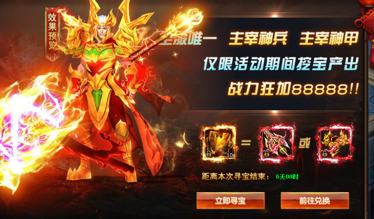活动期间,宝藏产出各职业神兵和神兵碎片。
