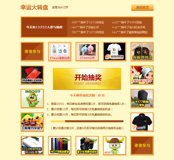 投票后就可以获得一次免费抽奖的机会,大家快去试试自己的运气吧!