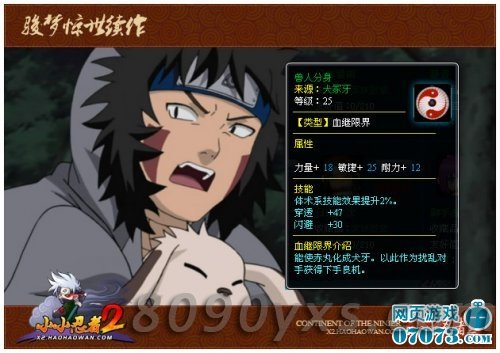 血继限界在火影中只有少数血统,而拥有血继限界的人无疑非常强大。在2中,玩家们可以通过与NPC搞好关系,获得其血继限界的传承。我们来说说游戏最初级,也是最容易获得的血继限界。