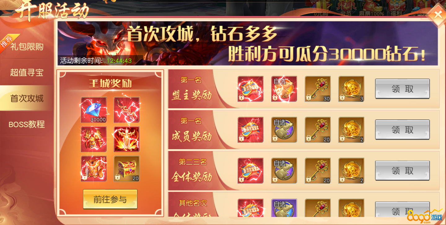 首次攻城,钻石多多。胜利方可瓜分30000钻石!