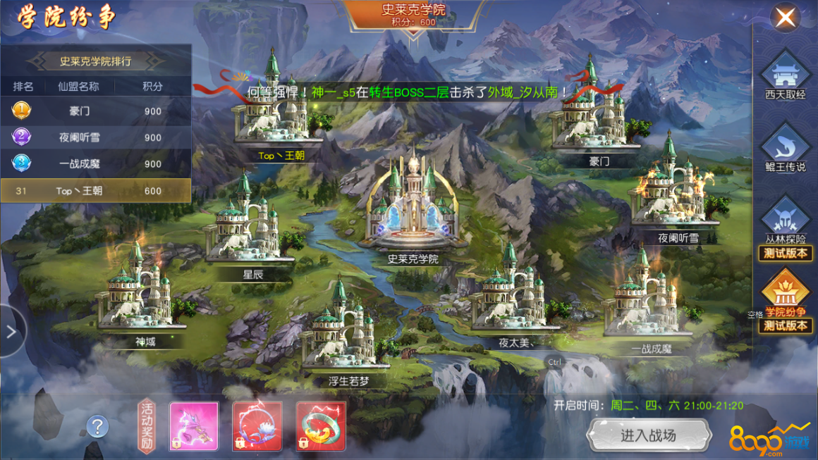 搜索"8090网页游戏"仙侠神域这款以仙侠冒险为主题的游戏,四种职业任意选择,十四张大地图任意传送,构建唯美仙侠世界,有很多小伙伴都想知道仙侠神域学院纷争怎么玩?仙侠神域学院纷争能获得哪些奖励?感兴趣的小伙伴一起来了解一下吧!