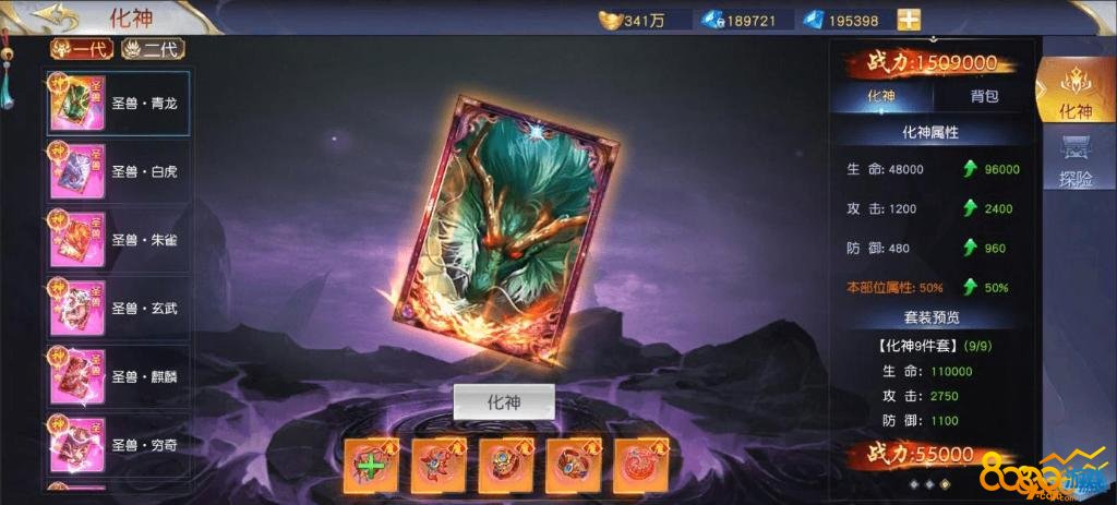 在游戏中,玩家打圣兽boss的时候有一定概率掉落圣兽探险钥匙。捡到钥匙以后去寻宝,可以抽到我们化神用的装备,一个圣兽凑满五个化神装备后可以化神,加成相当的多哦,全部的化神满了以后,三个相同的装备可以合成用来魔化,同理五个一套 。