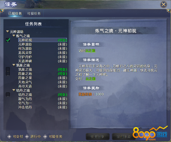 玩家接取任务后,需要通过NPC了解筑基之境的详情,前往四象天探查并采摘100个四象灵果(独立于平时的四象果任务)。