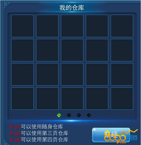 整理仓库: 点击整理按钮可对仓库内的物品按类型进行排列整理,使管理更加便捷。