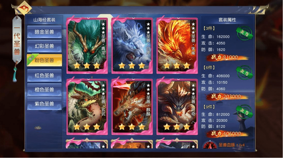 接下来,我们来谈谈圣兽套装的激活方法。当你收集到9张紫色品质以上的圣兽卡片时,就可以激活圣兽套装了。套装的品质越高,提供的属性加成和技能效果也就越强大。因此,在游戏中要尽可能地收集高品质的圣兽卡片。
