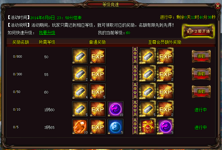 至尊会员额外奖励:绑定金条(小) *10、人参果*30、3级装备升级石*10
