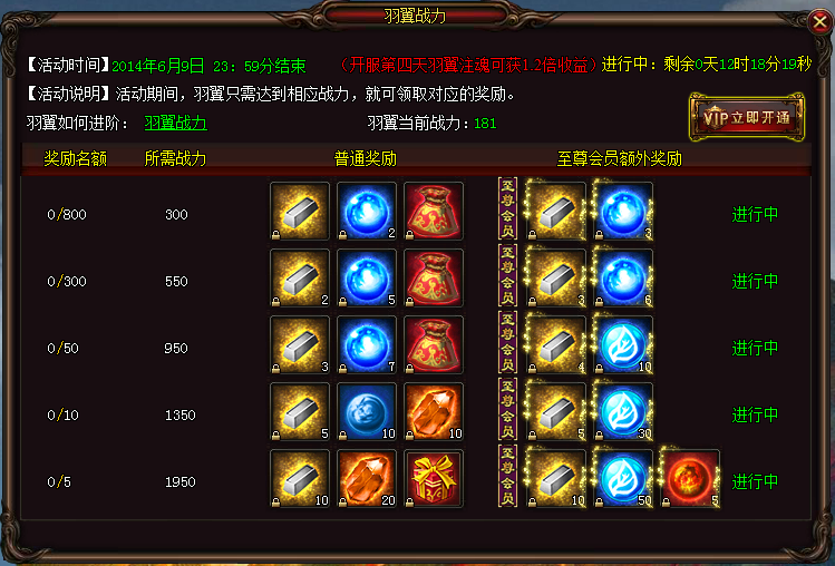 活动内容:在活动期间,羽翼只需达到相应战力,就可领取对应的奖励。名额有限先到先得!
