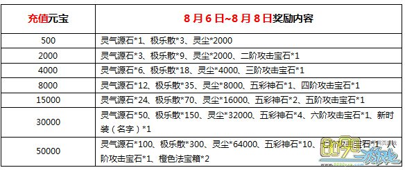 活动内容:活动期间,玩家3日累计充值即可获得相应奖励,每档奖励只可领取1次