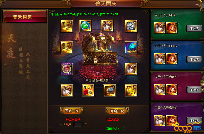 4. 使用秘宝钥匙抽奖,可一次性使用10个钥匙抽奖