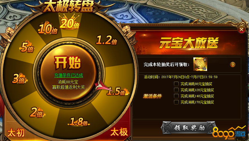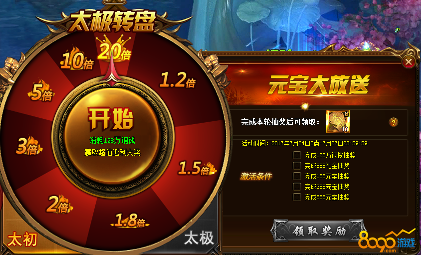 7. 完成每轮抽奖可领取额外奖励,目前共有太初,太极两轮抽奖