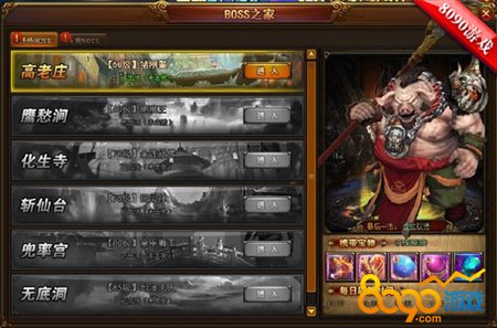 在8090西游伏妖篇张,BOSS之家里囊括了野外BOSS和阵营BOSS,击杀BOSS就可以获得不菲的奖励哦。怀揣宝物的BOSS就等你来降伏!游戏就是以西行取经之路为游戏主线,历经重重磨难的驱魔故事。所以你会成为另一个孙悟空吗,你会成为英雄吗?