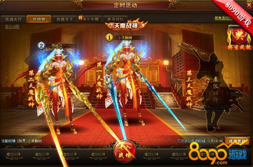 战胜可以在活动准备时间内使用特权给BOSS恢复生命,最大限度保证自己可以持续卫冕。参与活动的玩家可以使用鼓舞短时间提供自己的战斗力,成为战神的有理争夺者。在有限的时间内造成更多的伤害,保证自己媒体都参与活动累计获得更多的伤害值才是成为战神的关键。