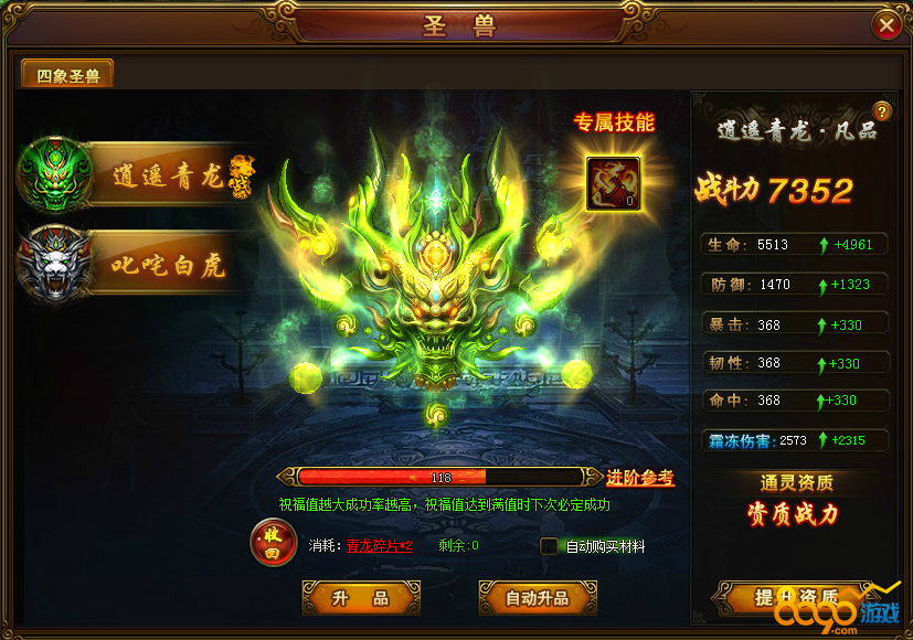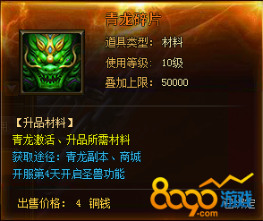 圣兽的升阶需要青龙碎片,青龙碎片可以通过圣兽副本获得,也可以通过充值活动获得。
