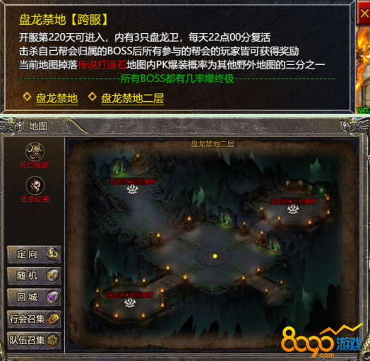 b. 盘龙禁地每日固定22点刷新3只盘龙卫BOSS