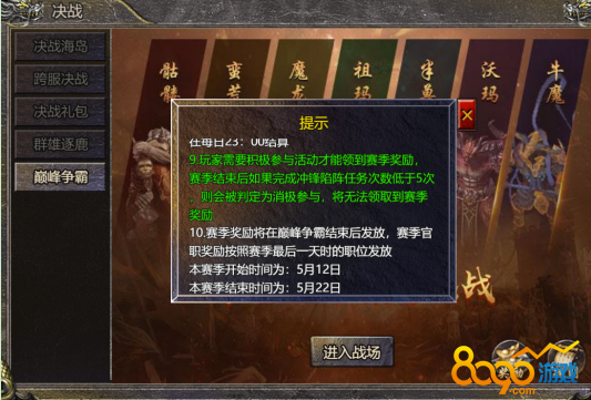 c. 期间尽情提高巅峰争霸中的战力吧,活动结束会根据官职和阵营排行发放丰厚的奖励