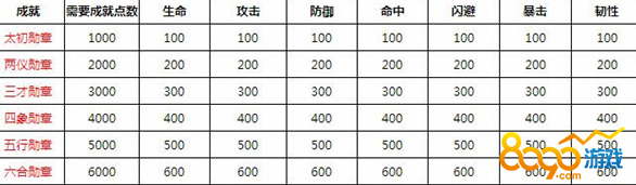 成就点数累计到一定数值可激活成就勋章,成就勋章可增加大量属性。