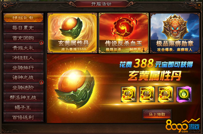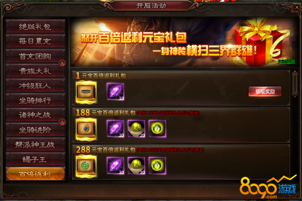 活动期间,超过百倍返利的超值礼包限时开启,如此良机不容错过!