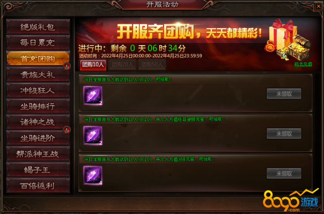 活动时间:开服第1天