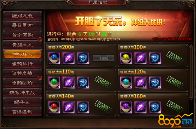 活动期间,角色达到指定等级即可领取丰厚奖励。