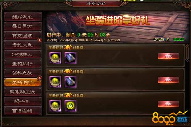 (1) 活动期间,玩家坐骑达到指定阶级即可领取相应豪礼!