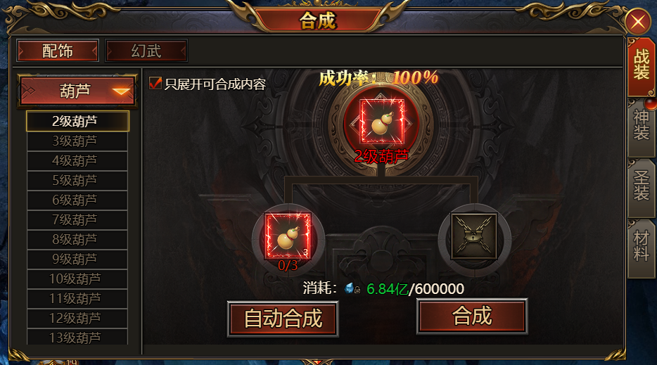 (3)合成更高品质的装备、道具可获得更高的属性,提升战力