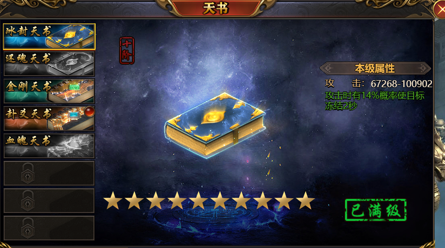 分为六种天书,冰封天书概率冻结攻击目标不能攻击不能移动,
