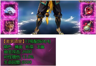 配饰分为葫芦,傩面,折扇,玉佩四个部位,大量增加攻击,防御,生命属性。