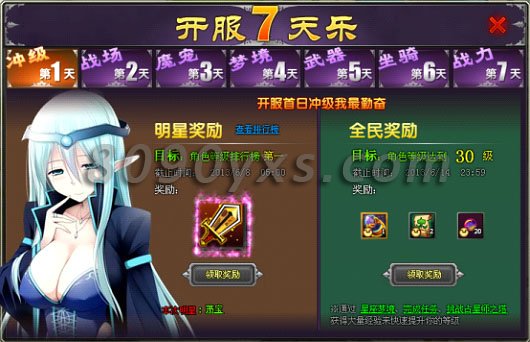 活动內容:活动期间内每天达成指定目标即可领取对应奖励,详情点击游戏中右上角“开服7天乐”图标查看