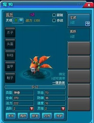 宠物分10个品阶,从1品——10品。神兽宠物1,3,5,7,9品时分别具有一个造型,进化到这些品阶时形象自动更新。