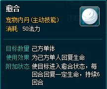 愈合:和回春差不多,不同的是愈合要在当前回合恢复己方气血值。