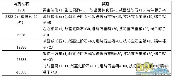 活动内容:在活动时间内,每日累计充值达到888钻石,即可领取奖品一份。