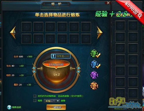 搜索"8090网页游戏"8090守卫雅典娜的熔炼回收系统是一个方便玩家升级的系统,在日常打宝升级过程中,会拾取到很多垃圾装备,这些装备就可以通过熔炼回收系统转化为海量的熔炼值,继而提升人物的属性哦!