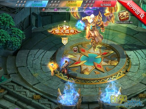 8090守卫雅典娜三界争霸将于每日的21:30-22:00开启,等级达到60级的玩家即可参与其中。在活动地图中,游戏将分为三个阵营,玩家进入后将自动分配阵营。通过击杀其他阵营的玩家、小兵,占领中立领地,玩家即可获得相应的积分用于最后的排名。每隔一段时间,中心小岛会刷新宝箱,抢夺宝箱、旗帜可以获得大量积分,达到5000分的阵营获得最终胜利。