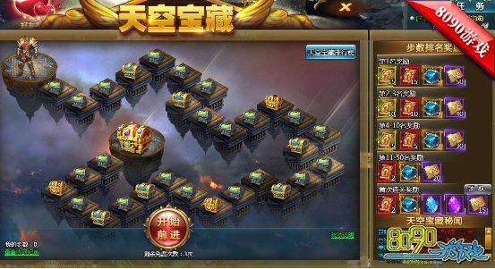 搜索"8090网页游戏"想必大家对于大富翁很是熟悉吧,这真的是童年的记忆呢!在8090守卫雅典娜中,也有类似大富翁的玩法,那就是天空宝藏。游戏中玩家通过扔骰子,然后前进获得奖励,很简单吧!