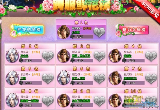 搜索"8090网页游戏"一场爱情的邂逅,一次唯美的浪漫。在8090守卫雅典娜中,鲜花也可以成为游戏的主题,为你提供一个展现爱意平台。跨服鲜花排名大比拼,为你心爱的人送上朵朵鲜花,最终抱得美人归!
