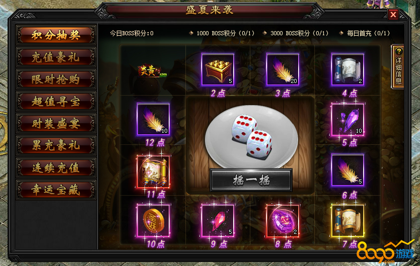 1.2 活动期间内击杀boss可获得积分,每天最多可以获得3次摇奖机会